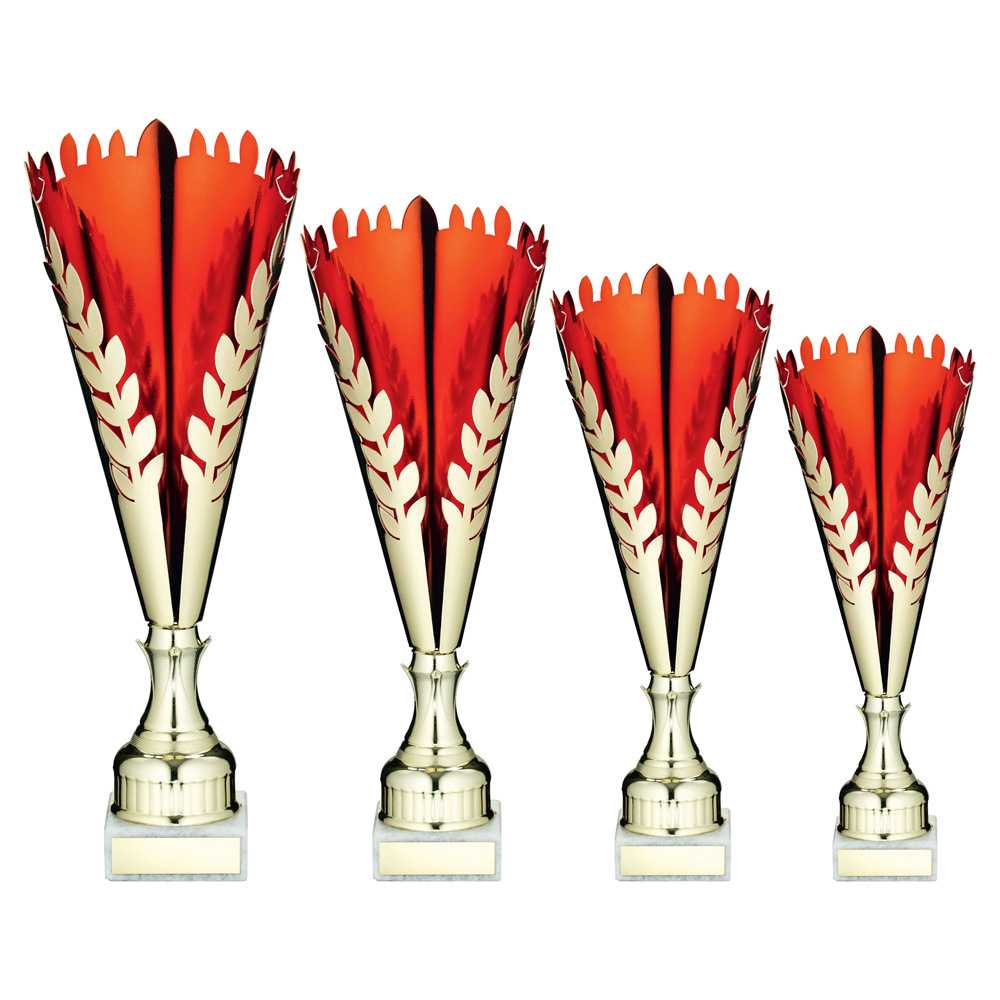 Gold|red Metal Wreath Trophy Cup - 15.5in