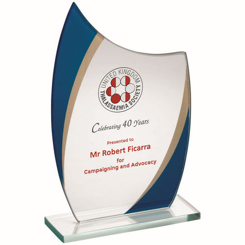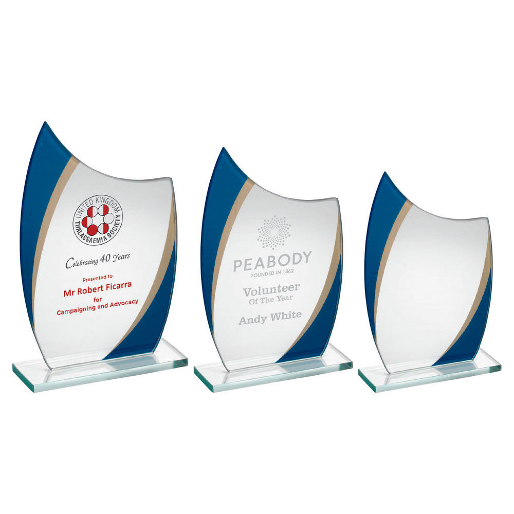 Jade Glass Curved Plaque With Blue|gold Highlights (4mm Thick) - 6in