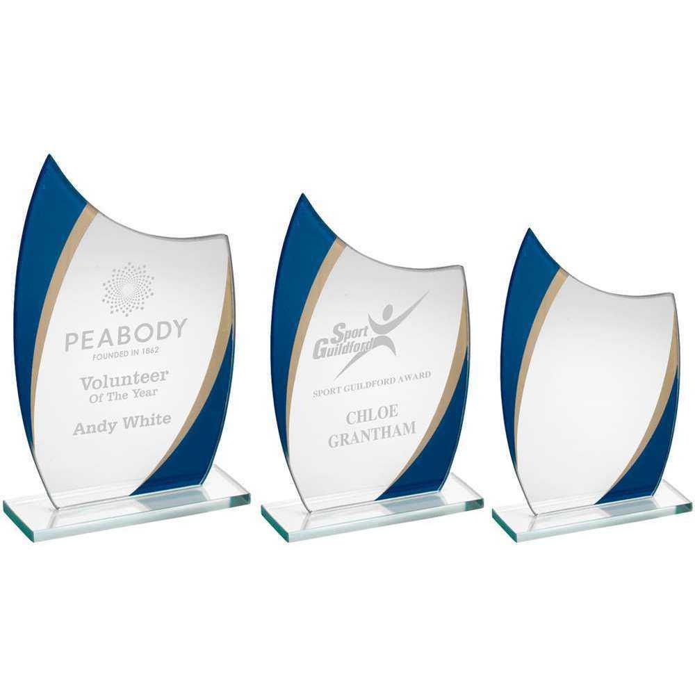 Jade Glass Curved Plaque With Blue|gold Highlights (4mm Thick) - 6.75in