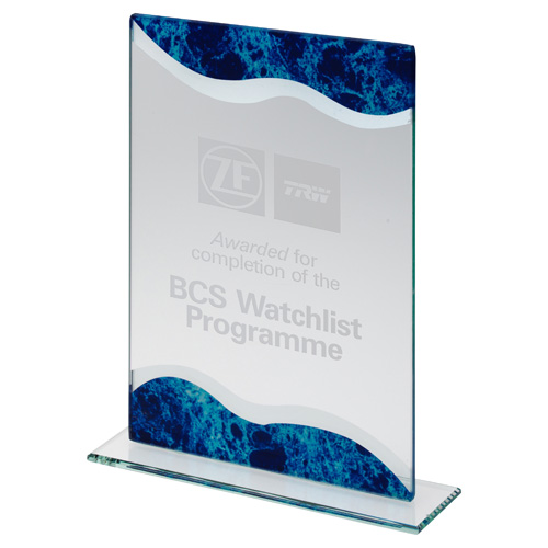 Xxx Jade Glass Rectangle Plaque With Silv|blue Detail (4mm Thick) - 7.25in