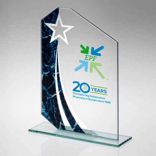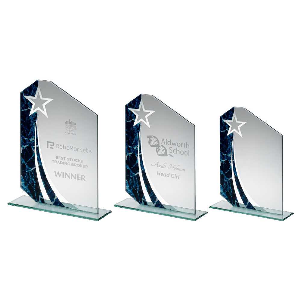 Jade Glass Plaque With Blue|black Marble Design (4mm Thick) - 8in