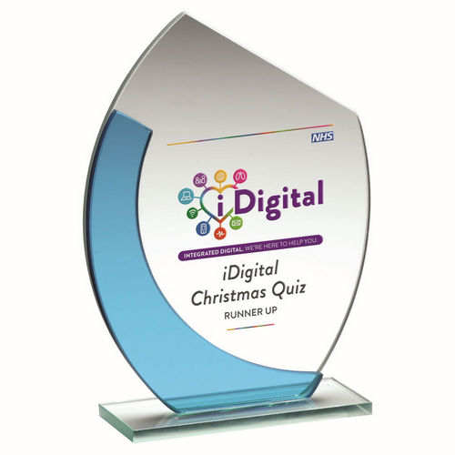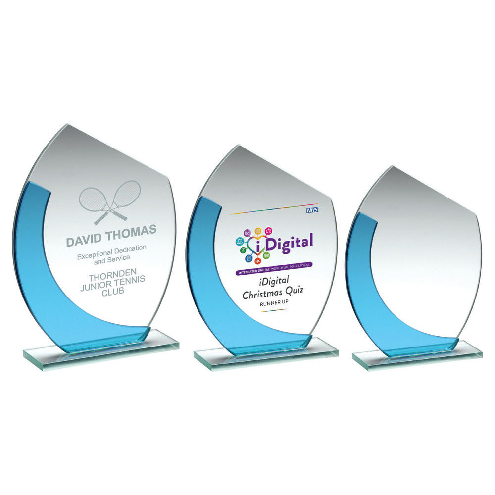 Jade|blue Glass Oval Plaque With Angled Top (4mm Thick) - 7in