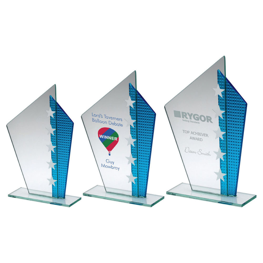 Jade Glass Plaque With Blue Shard & Silver Stars (4mm Thick) - 7.25in