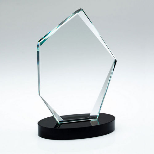Clear Glass Offset Diamond Plaque On Black Base (15mm Thick) - 7in