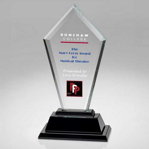 Clear Glass Tall Arrow Plaque On Black Base (12mm Thick) - 14in