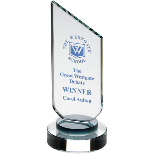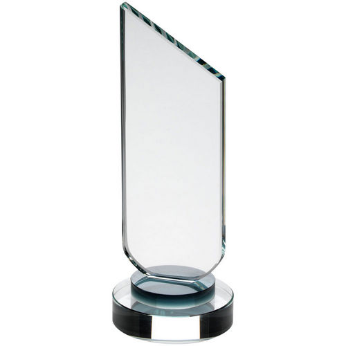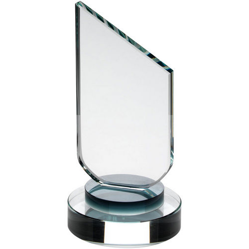 Clear Glass Plaque With Black Neck And Round Base - 7.5in