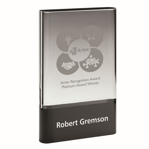 Clear Glass Plaque On Black Base (30mm Thick) - 9in