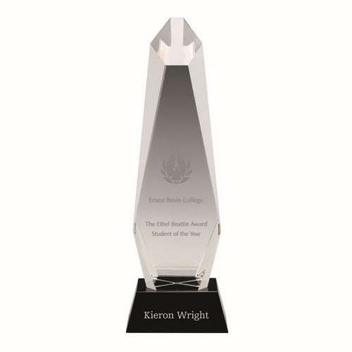 Clear Glass Hexagonal Column On Black Base - 11in