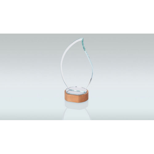 Clear Glass Flame On Light Wood Base (10mm Thick) - 9in