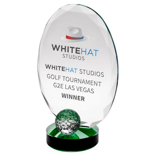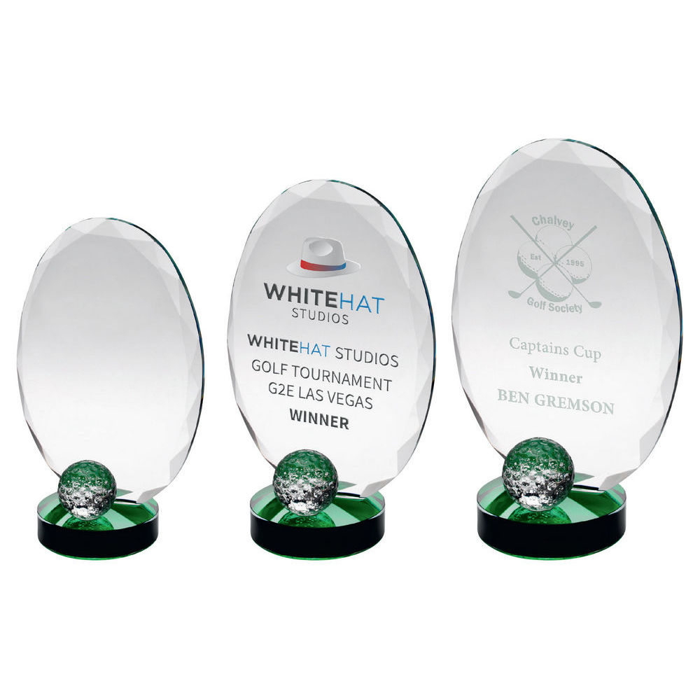 Clear Glass Oval And Golf Ball With Green Highlights (10mm Thick) - 7.25in