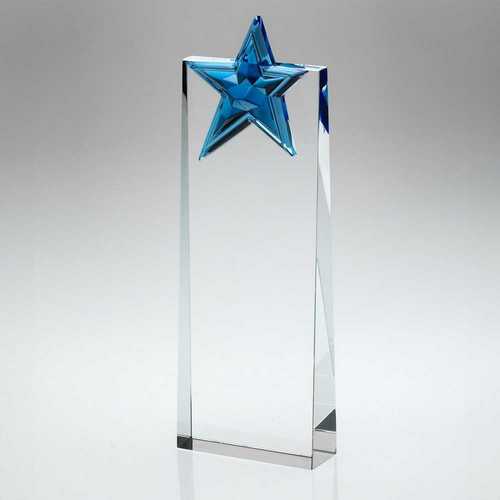 Clear Glass Wedge With Blue Glass Star - 8in