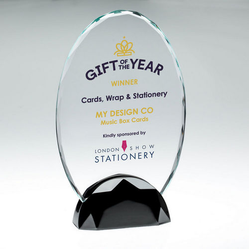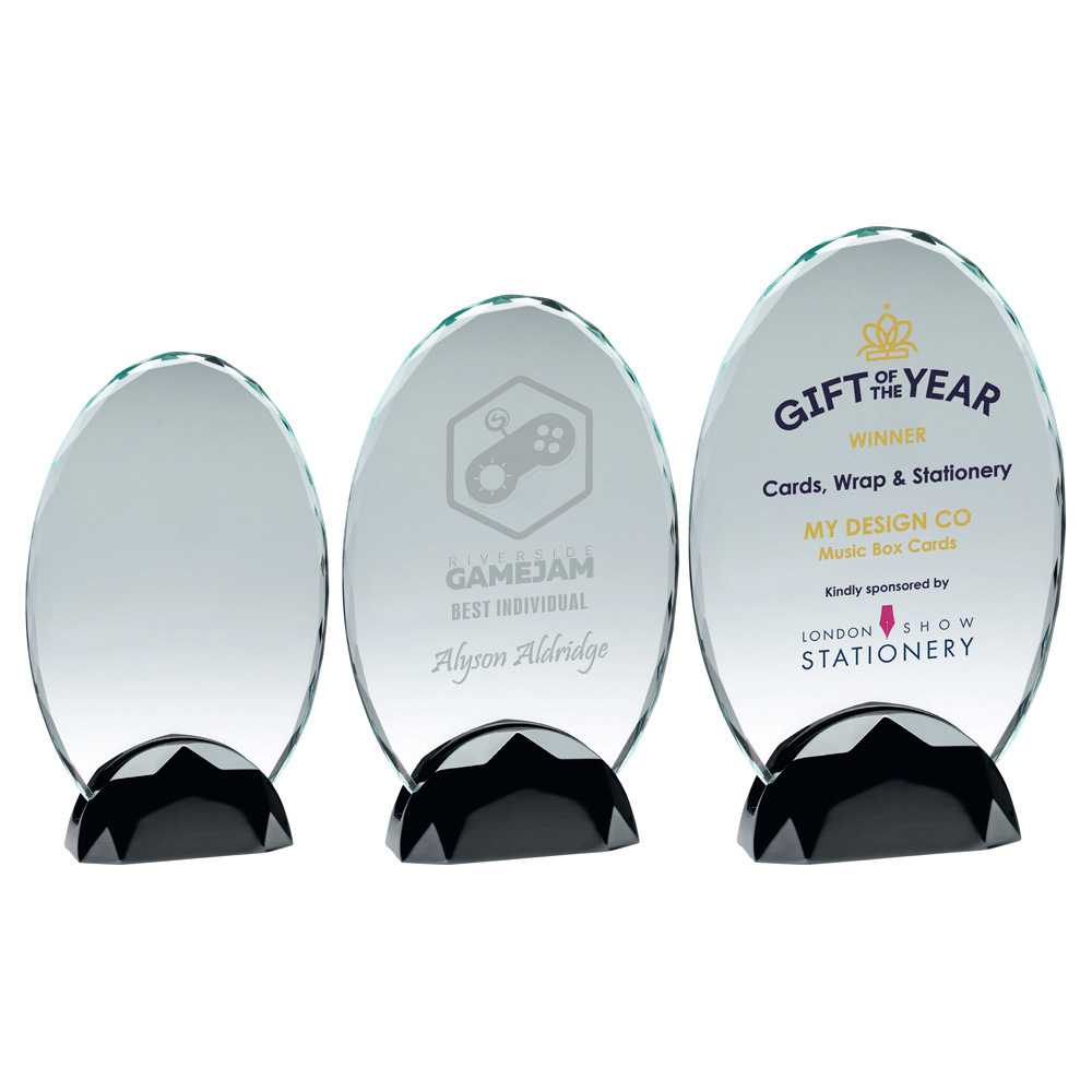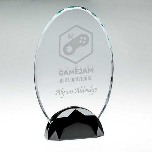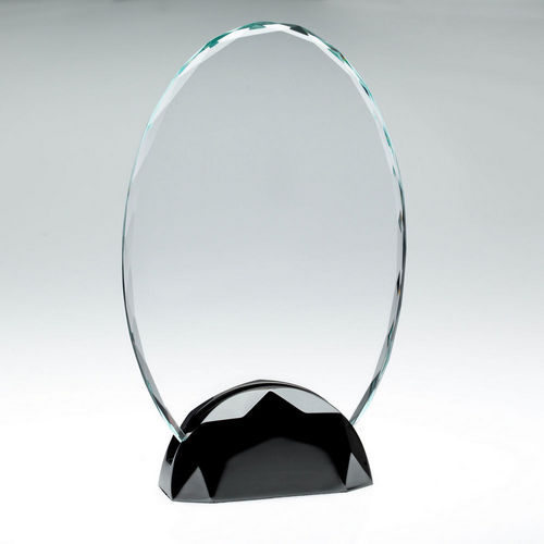 Clear Glass Oval Plaque (10mm Thick) In Gun Metal Base - 8in