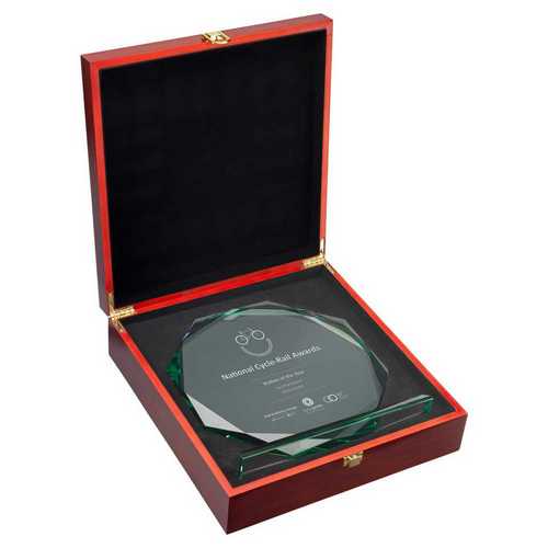 Jade Glass Octagon In Quality Wood Gift Box (19mm Thick) - 10in