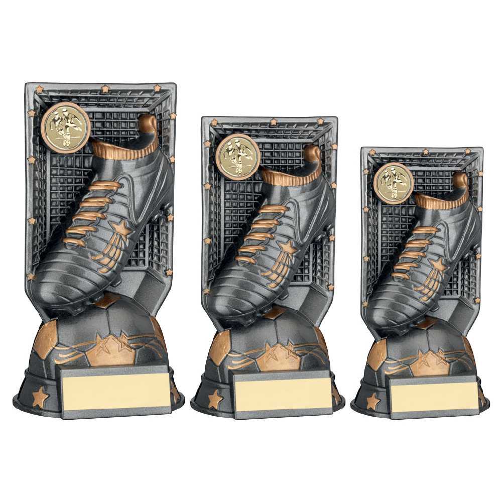 Gunmetal Grey|gold Filled Plastic Football Boot On Net & Plate (1in Cen) - 6.5"