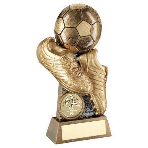 Brz|gold|pew Flatback Football And Boots On Riser With Plate (1in Cen) - 6.5in