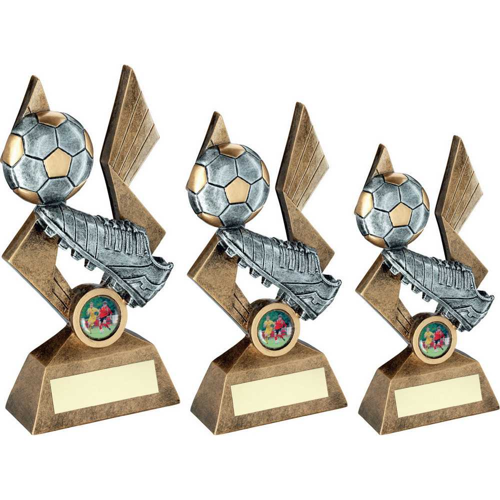 Brz|pew|gold Football And Boot On Pointed Backdrop With Plate (1in Centre) - 8"