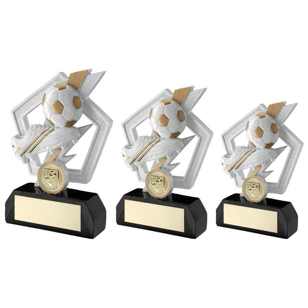 White|gold|blk Football And Boot On Flash Pentagon With Plate (1in Cen) - 5.25in