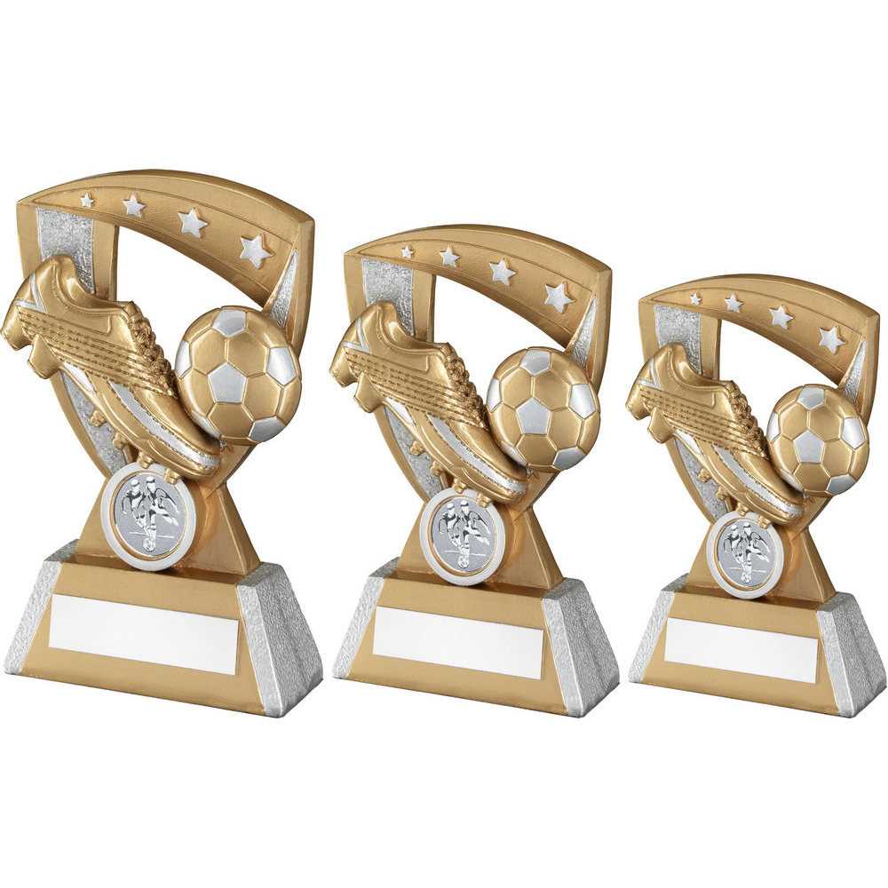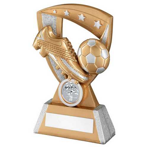 Gold|silver Football And Boot On 4 Star Shield With Plate (1in Centre) - 6in