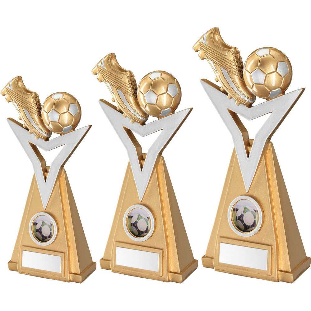 Gold|silver Football And Boot On Tri Column With Plate (1in Centre) - 8in