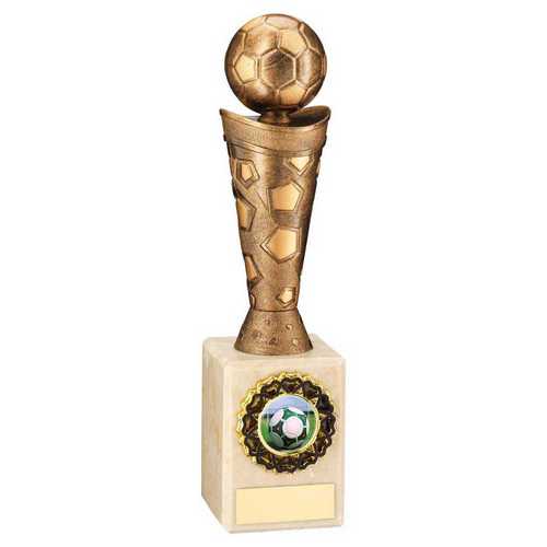 Bronze|gold Plastic Football Figure On Cream Marble Trophy - 8in