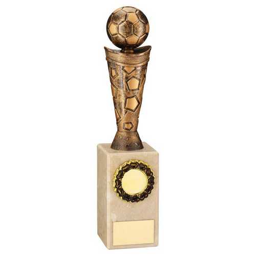 Bronze|gold Plastic Football Figure On Cream Marble Trophy - (1in Cen) 10in