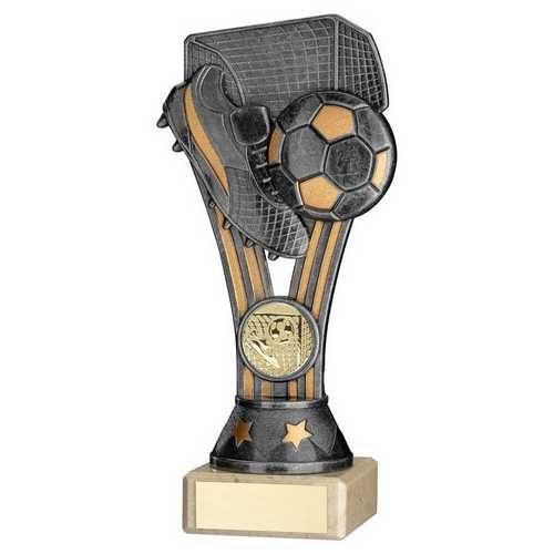 Pewter|gold Plastic Wembley Figure On Cream Marble Trophy (1in Cen) - 6.75in