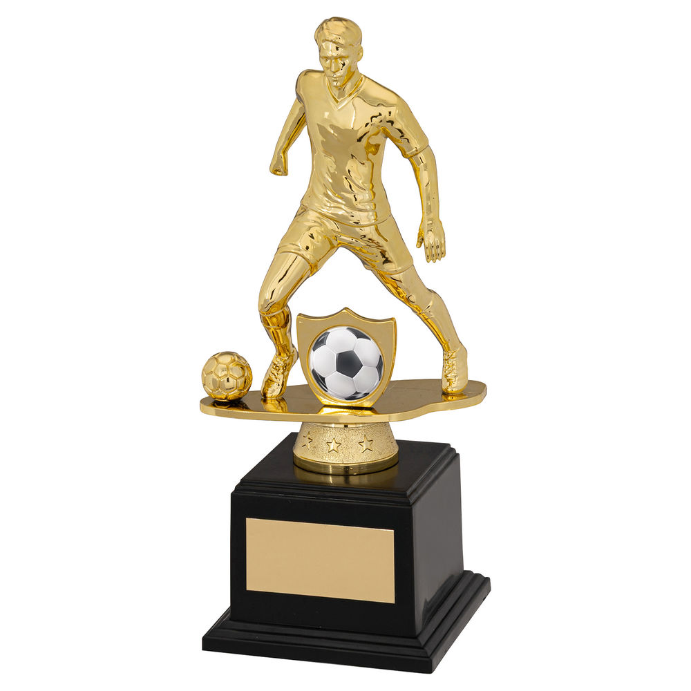 Gold|black Plastic Male Football Figure On Filled Base (1in Cen) - 8.5in