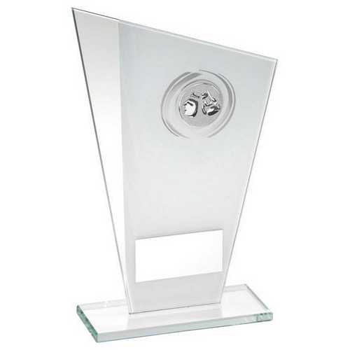 White|silver Printed Glass Plaque With Boxing Insert With Plate - 8in