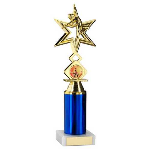 Gold|blue Dance|gym Star Figure Assembled On Marble - (1" Cen|2" Tube) 9in