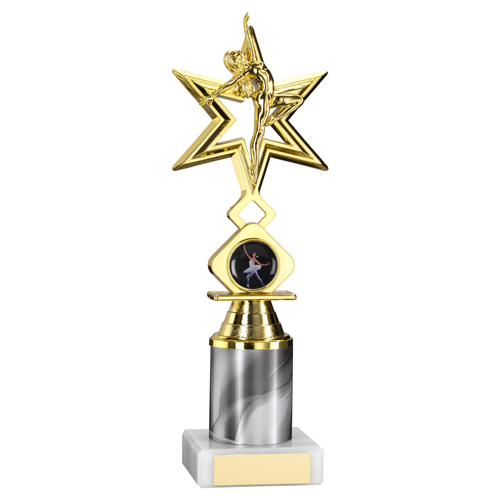 Gold|white Dance|gym Star Figure Assembled On Marble - (1" Cen|2" Tube) 9in