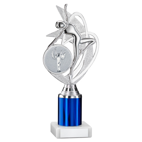 Silver|blue Dance|gym Figure Assembled On Marble - (2" Cen|1" Tube) 8in