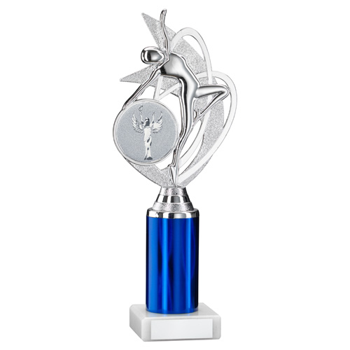 Silver|blue Dance|gym Figure Assembled On Marble - (2" Cen|2" Tube) 9in
