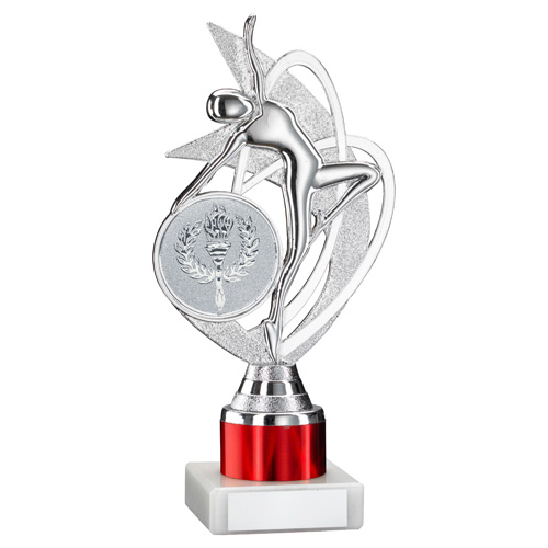 Silver|red Dance|gym Figure Assembled On Marble - (2" Cen|3" Tube) 10in