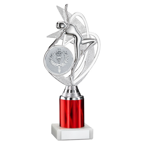 Silver|red Dance|gym Figure Assembled On Marble - (2" Cen|3" Tube) 10in