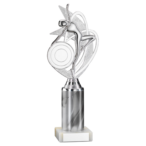 Silver|white Dance|gym Figure Assembled On Marble - (2" Cen|3" Tube) 10in