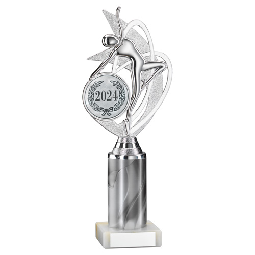Silver|white Dance|gym Figure Assembled On Marble - (2" Cen|2" Tube) 9in