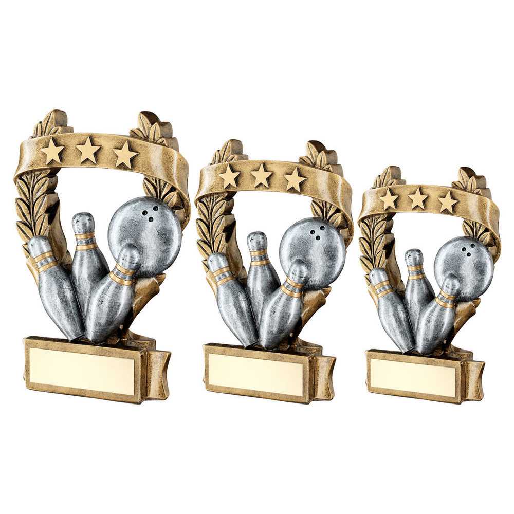 Brz|pew|gold Ten Pin 3 Star Wreath Award With Plate - 7.5in