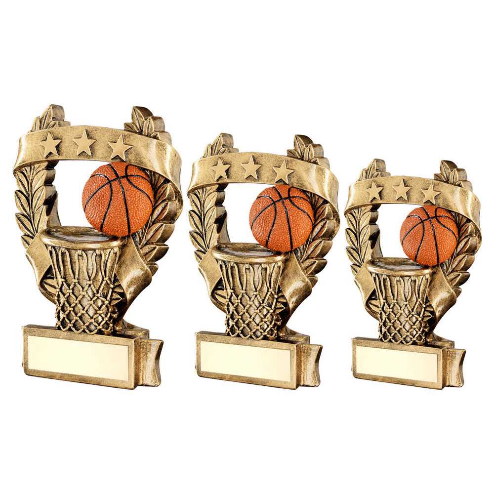 Brz|gold|orange Basketball 3 Star Wreath Award With Plate - 5in