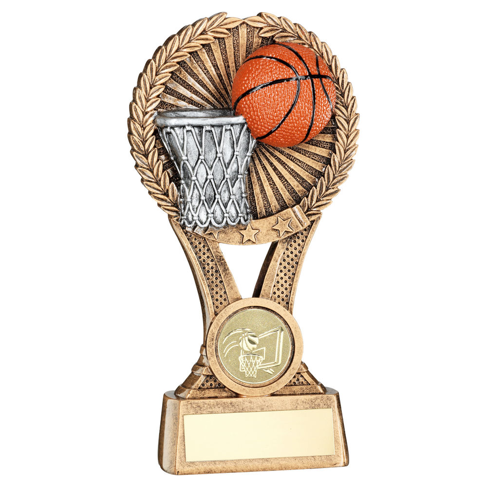 Brz|gold|pew Basketball Round Wreath On V Riser With Plate (1in Cen) - 5in