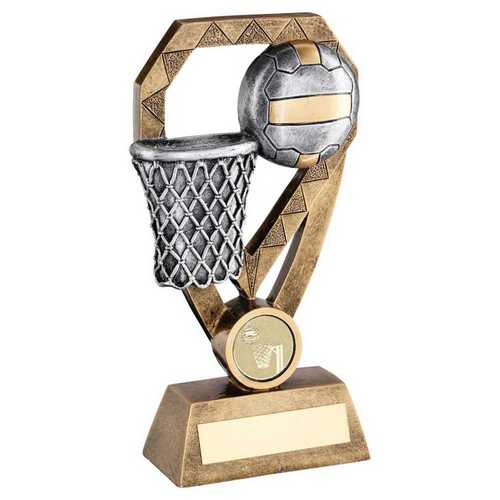 Brz|pew|gold Netball With Net On Diamond With Plate (1in Centre) - 6in