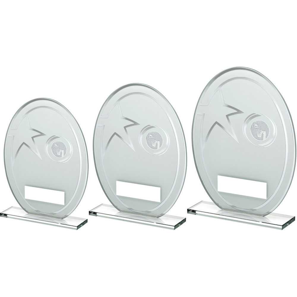 White|silver Printed Glass Oval With Netball Insert And Plate - 7.25in