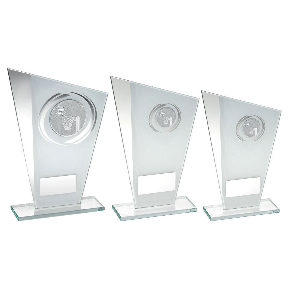 White|silver Printed Glass Plaque With Netball Insert With Plate - 8in