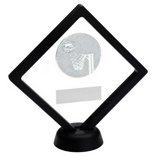 Picture of Black Plastic Box With Netball Insert Trophy Silver - 3.5in