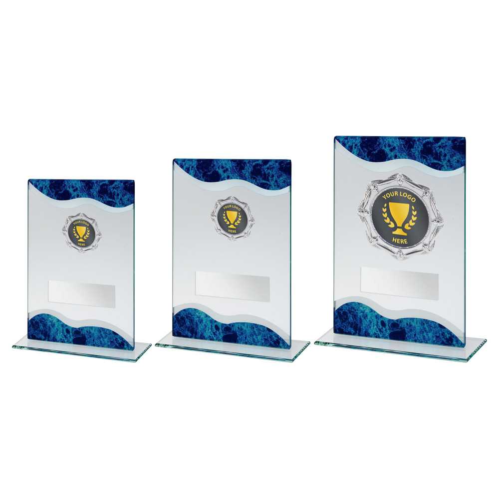 Jade|blue|silv Glass Rectangle With Silver Trim Trophy (1in Centre) - 6.5in