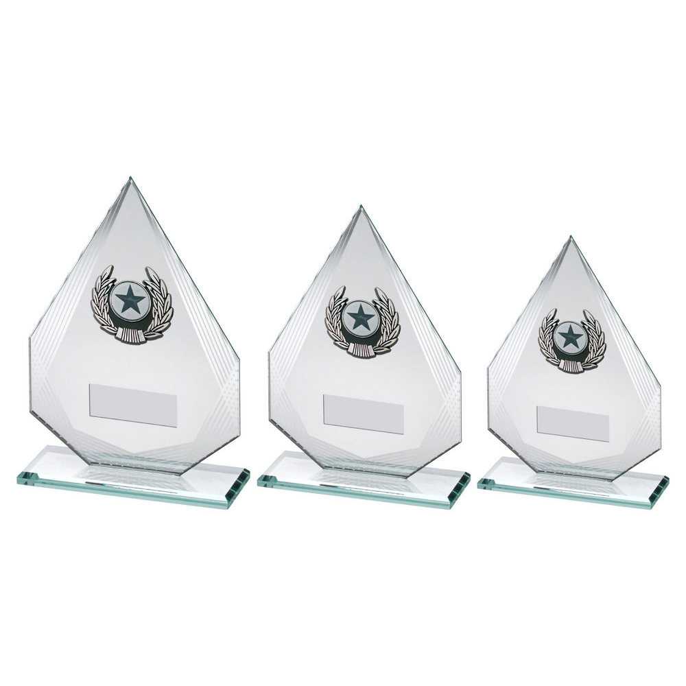 Jade|silver Diamond Glass With Silv|blk Trim Trophy (1in Centre) - 8in