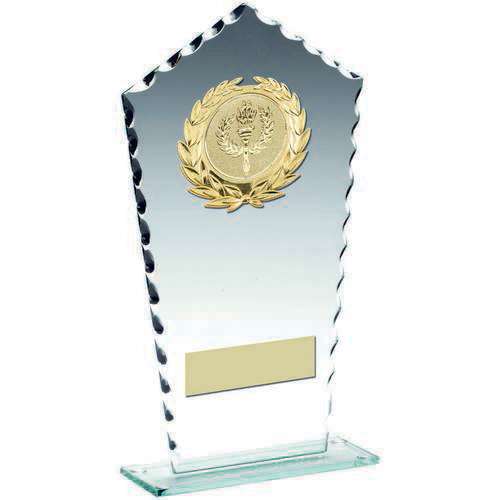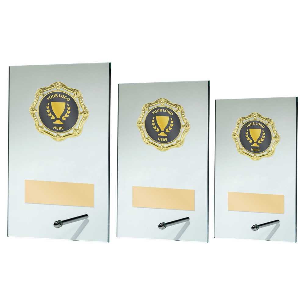 Jade Glass Rectangle Plaque With Gold Trim Trophy (2in Centre) - 7.75in