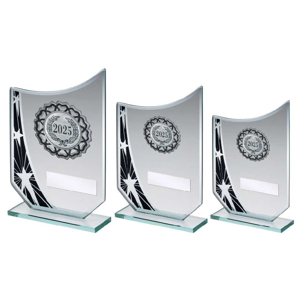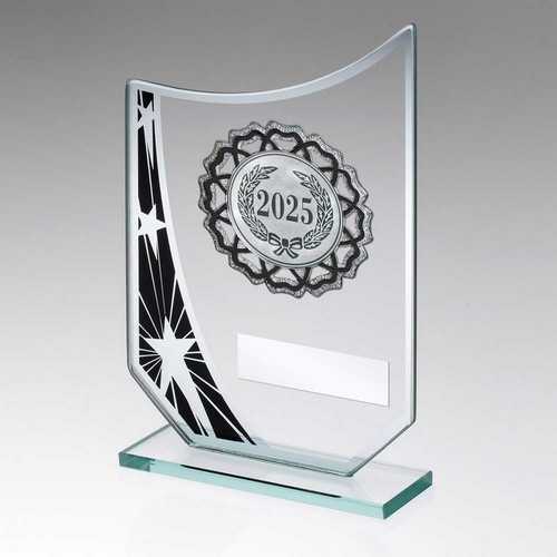 Jade|blk|silv Glass Star Plaque With Silv|blk Trim Trophy - (2in Cen) - 8in