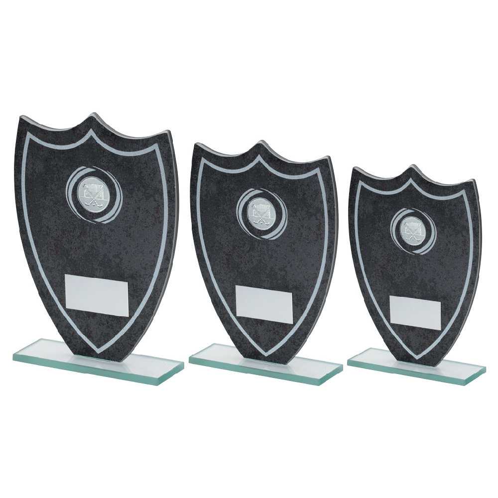 Stone Effect Glass Shield With Hockey Centre And Plate - 8in