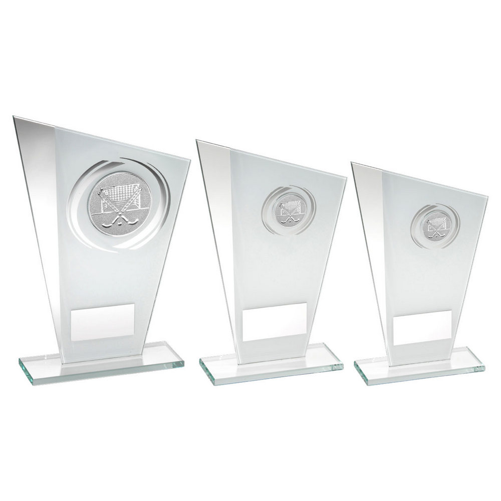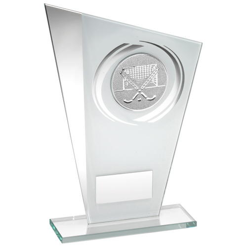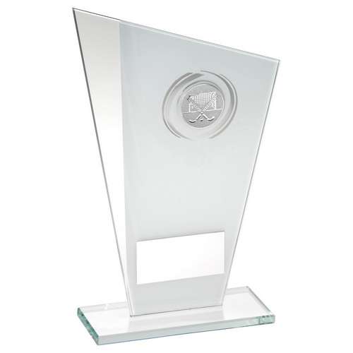 White|silver Printed Glass Plaque With Hockey Insert With Plate - 8in