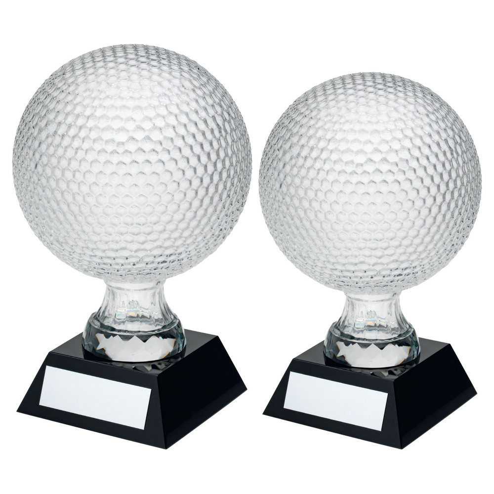 Clear Glass Golf Ball On Black Base With Plate - (5.5" Dia) 9.25in